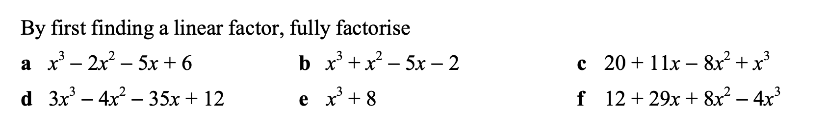A-Level Maths | Cubics Last updated on 14 Oct 2025 Question 1If (x-a) is a factor, then f(a) = 0Question 2If (x-a) is not a factor, then f(a) = the remainder left when dividingQuestion 3Question 4Question 5Question 6 Previous A-Level Maths | Co-ordinate Geometry Next Indirect Tax | A-Level Economics Model Paragraph (AQA, Edexcel, OCR)