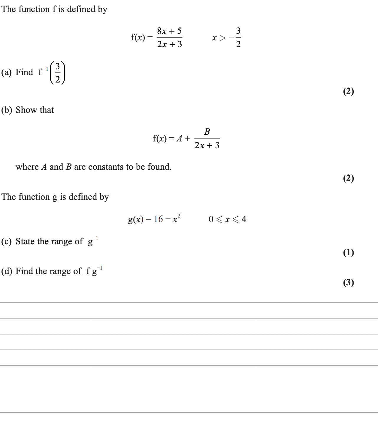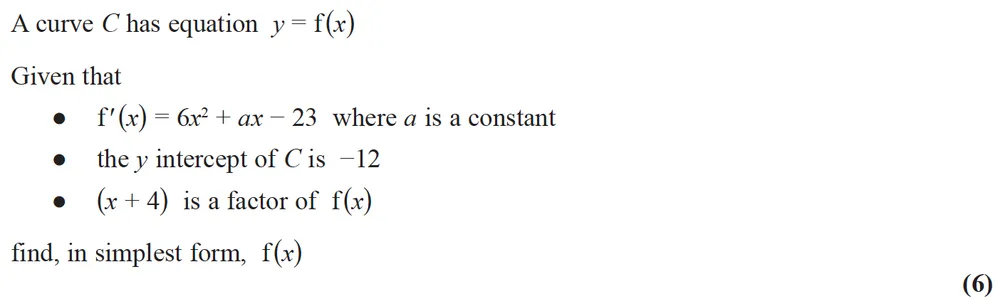 Edexcel A-Level Maths Paper 1 June 2020Question 6