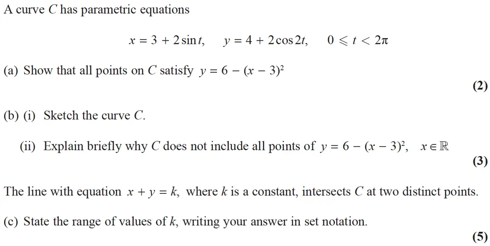 Edexcel A-Level Maths Paper 2 June 2022Question 8