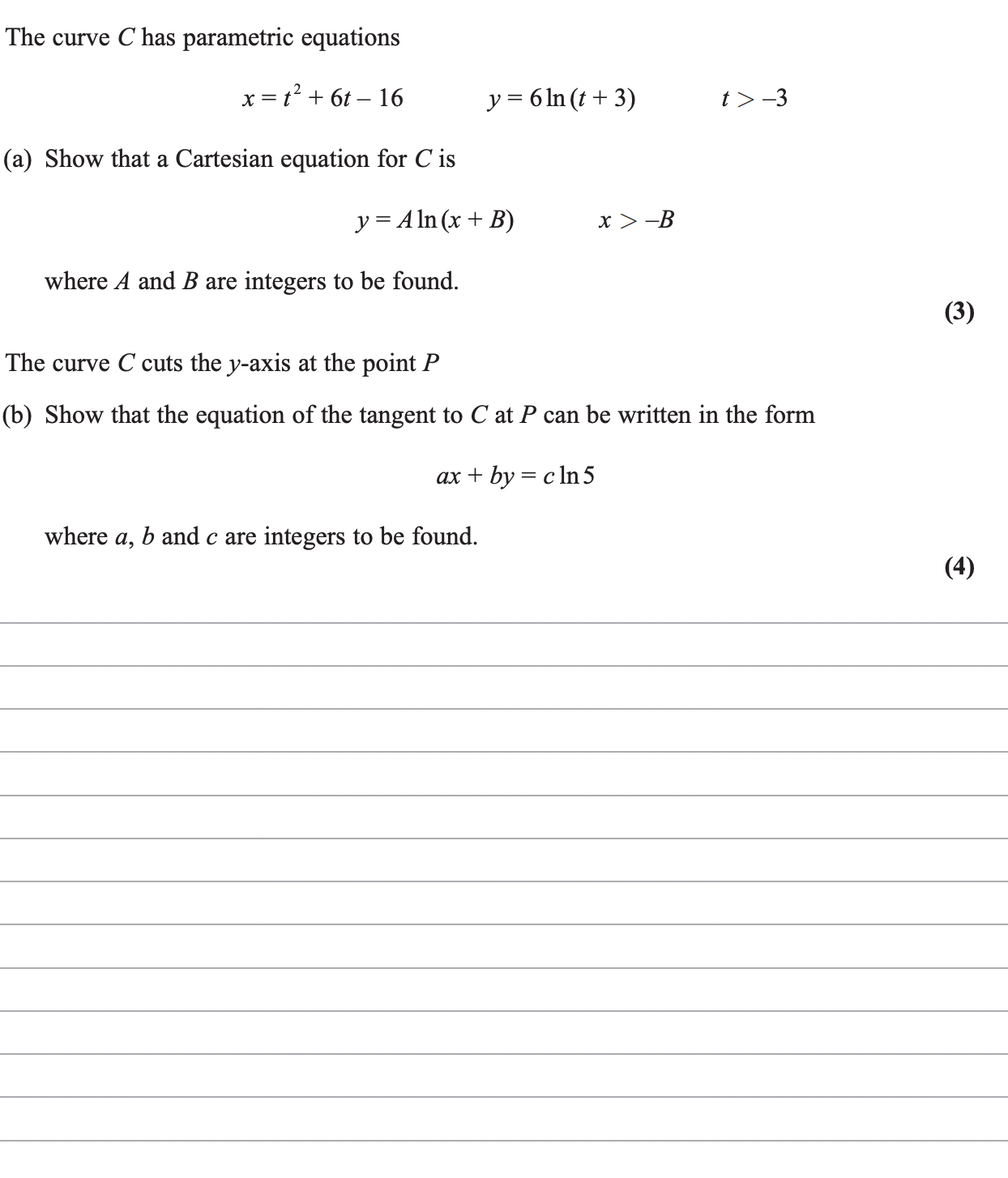 Edexcel A-Level Maths Paper 2 June 2020Question 4