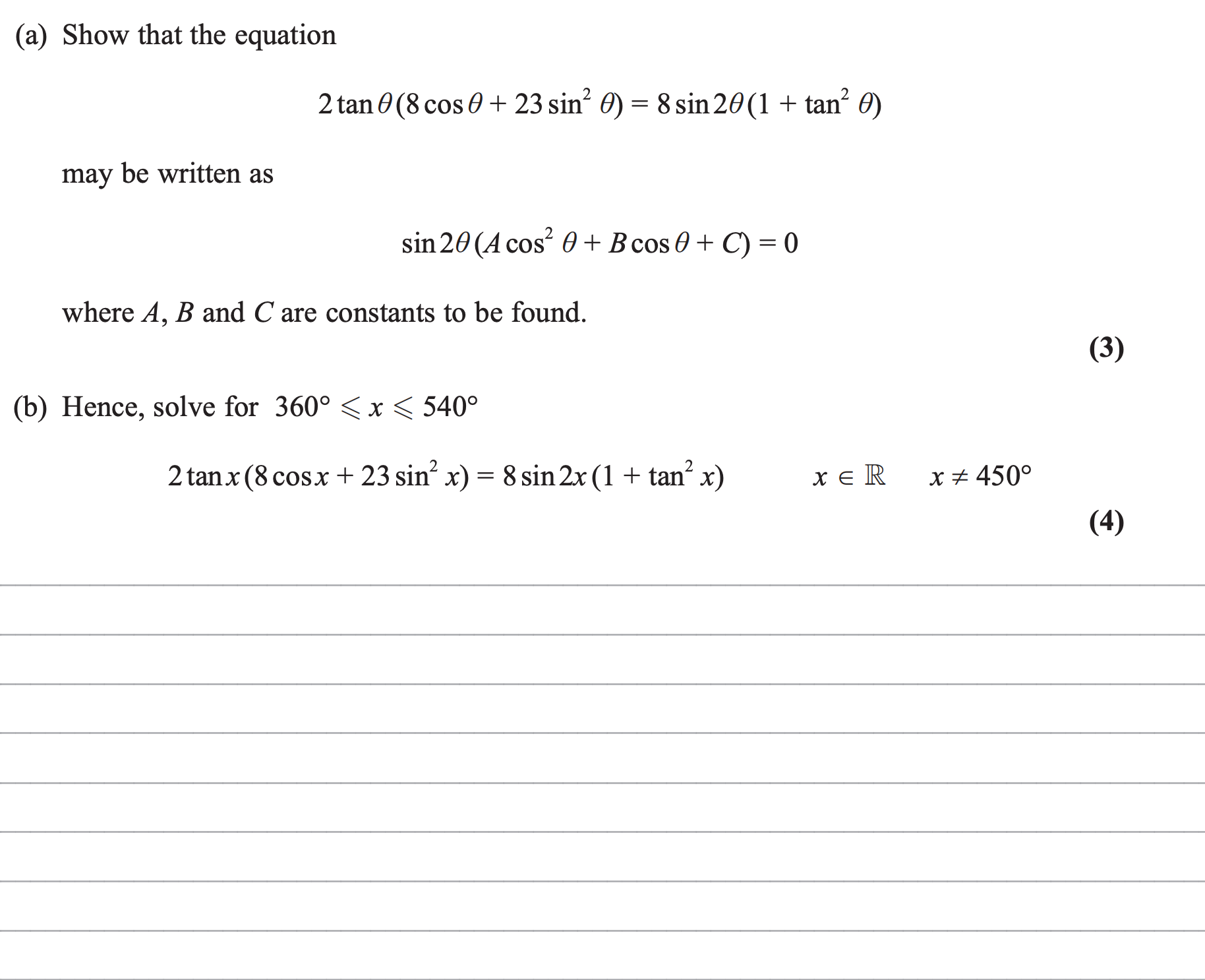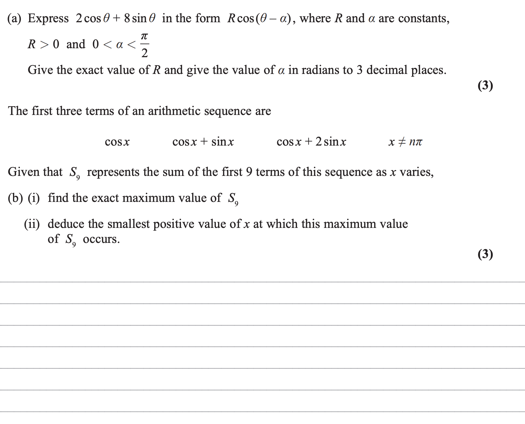 Edexcel A-Level Maths Paper 2 June 2019Question 9