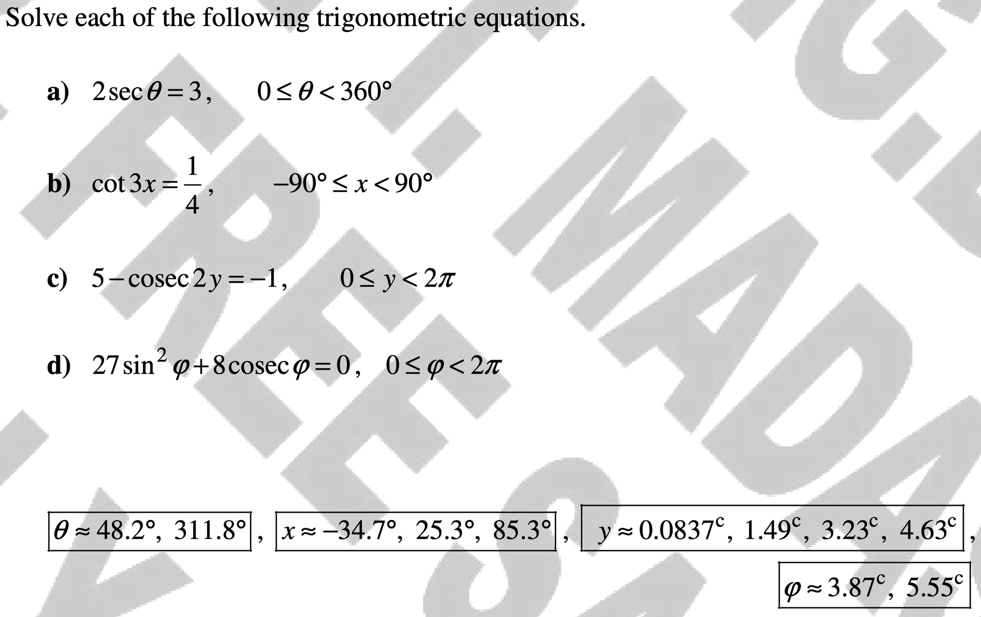 - sec(x), cosec(x) and cot(x)
