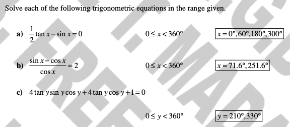 e. sin(x - 60)° = 0.5