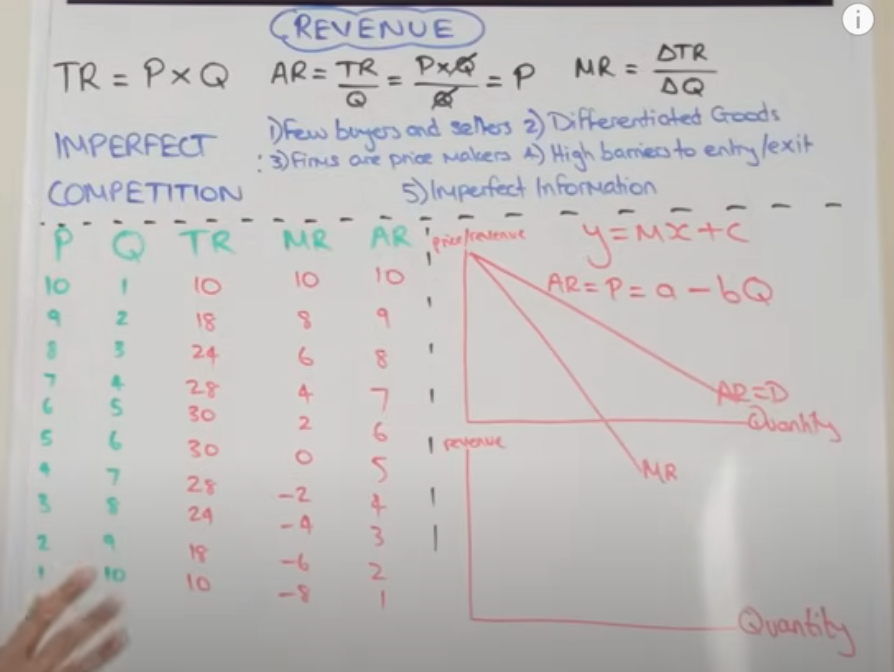 Average revenue: total revenue/ quantity = price x quantity/ quantity = price