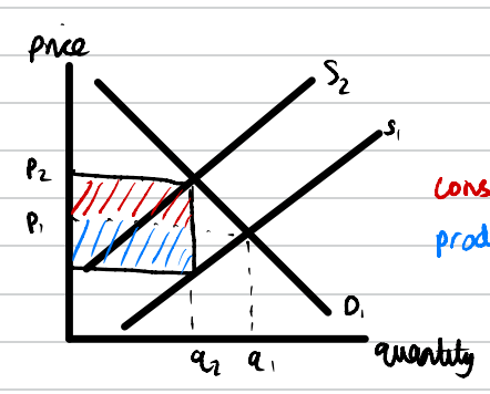 The diagram shows that this indirect tax (specific) leads to the new supply curve meeting the demand curve at a new equilibrium quantity of q2, which is lower than q1. This is going to reduce electronic waste as less people will be buying new devices as firms have passed on the higher costs onto consumers in the form of higher prices. Extract D Line 4 mentions that 1.2 million tonnes of electronic devices were sold in 2018 and if the government are able to reduce the sales of new electronic devices, this would slow down the waste problem.
