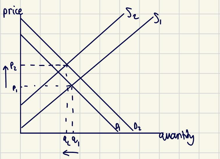 Another reason that could have caused the price of streaming television content to increase could have been an increase in demand. Demand is the number of tv services that people are willing and able to buy at each price. Trends can cause demand to shift. During 2021 and 2022, the UK was recovering or protecting themselves from covid. Therefore, there was a lot of self-isolation. This meant that people to change their hobbies and rely on tv for entertainment. Extract A Line 3 mentioned that 'The demand for individual firms streamed television content boomed when people were forced to stay at home'. This meant that there was a greater quantity demanded at each price, hence a right shift. The diagram below shows the increase in price from p1 to p2 as a result of both a decrease in supply and an increase in demand.