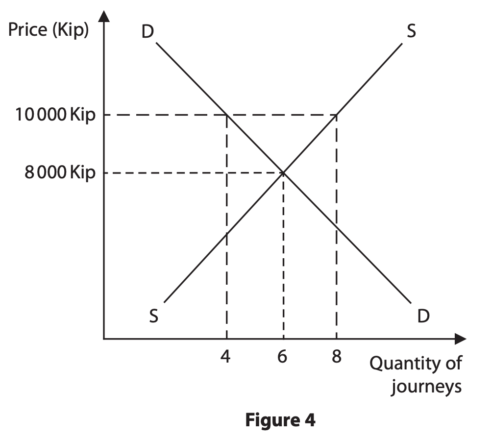 In the capital of Laos, Vientiane, residents and tourists can now use the LOCA app to hire a taxi. Figure 4 shows the excess supply of LOCA drivers working in an area of the city when the price of a journey is 10000 Kip.