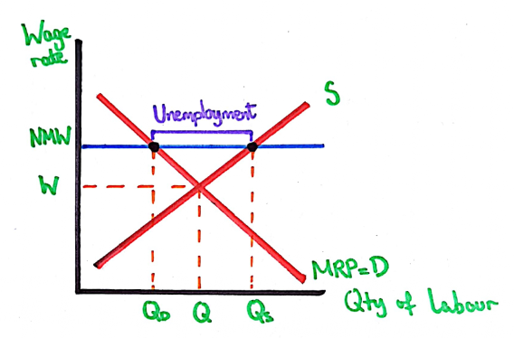 - Evaluation: a minimum wage is weak as it causes unemployment and this can widen the gender pay gap. but a minimum wage would work well if it is in a monopsony labour market.