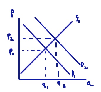 The diagram shows the right shift in the demand for milk causing the price of milk to increase.